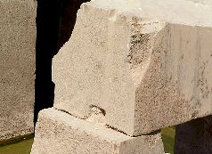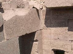 Шестой факт. Легко можно заметить, что примитивные методы раскола гранита с помощью клиньев применялись вовсе не при строительстве Осириона, а лишь при попытке его разобрать. Кстати, именно на примере колонн Осириона можно увидеть, что получить ровные поверхности данной технологией нельзя. Гранит раскалывается "как ему вздумается", поскольку не имеет слоистой структуры, а составляющие его кристаллы мелкие и ориентированы хаотично. Вот тем, кто разбирал Осирион, и не удалось ровно расколоть колонны. Лишь изуродовали их.