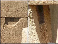 Во-вторых, крайние к той же дальней стене блоки перекрытия "потолка" имеют скос (см. Рис. 132). Этот скос достигнут за счет отрезания под углом не всей нижней грани блока, а только ее части. У блока отрезан только один угол!… Мало того, что это само по себе требует весьма нетривиальных технологий обработки такой твердой породы, как гранит. Можно заметить, что вертикальная плоскость оставшейся части равнялась одновременно со стеной.