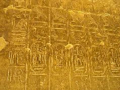 Любопытно, что в коридоре, проходящем по этому "загнутому хвостику" на стенах нанесен список фараонов, правивших в Египте до Сети I. Это один из нескольких дошедших до наших дней списков египетских правителей. И когда идешь к Осириону, проходишь как раз мимо этого списка, как бы постепенно погружаясь вглубь времен к истокам – к тому времени, когда Египтом правили боги…