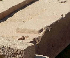 Восьмой факт. Строители не ограничились простой укладкой блоков друг на друга. На торцах архитравов видны специально сделанные углубления. Очень похоже, что на колоннах в этих местах были оставлены выступы. Либо имелись также углубления в которые были вставлены какие-то каменные "шпонки". И в том и другом случае мы имеем дело со стремлением дополнительно подстраховаться от возможных смещений архитравов со своего места и обеспечить большую прочность конструкции. Все говорит о весьма неплохом знании строительных технологий теми, кто создавал Осирион.