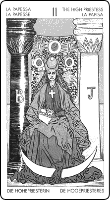 Карта Жрицы часто ассоциируется с двумя легендами. Согласно мнению некоторых специалистов, Жрица изображает знаменитую папессу Иоанну – легендарную женщину, жившую в IX веке, которая, переодевшись мужчиной, достигла высокого положения в церкви.