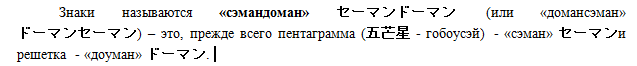 Знаки называются «сэмандоман» (или «домансэман») – это, прежде всего пентаграмма (??? – гобоусэй) – «сэман» и решетка – «доуман».