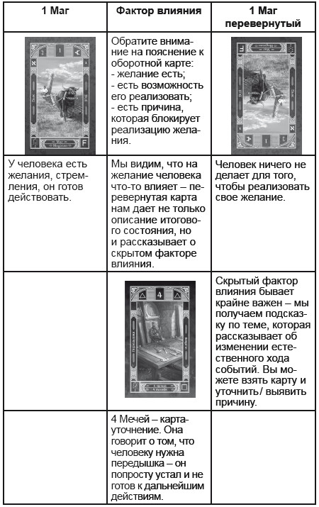 Нередко можно встретить утверждение, что для использования перевернутых карт достаточно использовать приставку «не» для того, чтобы получить новое значение карты. Например: Маг – Хочу – Не хочу.