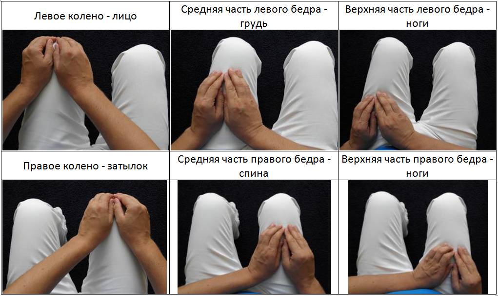 Затем перекладываете ладони на правое колено. Энергия идет на затылок исцеляемому. Средняя часть правого бедра – спина, а верхняя – ноги.