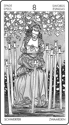 Традиционно Восьмерка Мечей известна как карта ограниченной силы. В астрологии она соответствует первым десяти градусам Близнецов, где бог удачи и развития Юпитер играет в логические игры и решает интеллектуальные задачи, чтобы оставаться молодым и прекрасным.