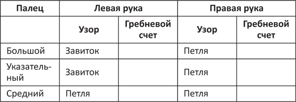Судя по узорам на кончиках пальцев, вы принадлежите Школе служения (4 завитка). Это один из университетов жизни, где человеку предстоит научиться радостному служению людям. Ваша задача – от чистого сердца, искренне, с удовольствием помогать другим, не забывая себя. Поскольку завитки находятся на левом большом и указательном пальцах, деятельность сконцентрируется, прежде всего, на «семье». Под «семьей» мы понимаем людей, которые вас окружают (близкие, родственники, друзья, коллеги). Причем помощь эта будет носить обязательно творческий и публичный характер (завитки на безымянных пальцах).