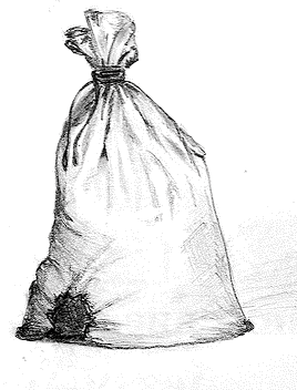 Его благосостояние постепенно уменьшается, хотя он каждый день заполняет этот мешок.
