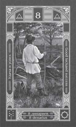 ? Символизм. Символизм карты созвучен старой пословице: «Кончил дело – гуляй смело». Человек закончил работу, которая принесла ему удовлетворение. И потому, что сделал так, как было задумано. И потому, что его работа принесла ему значительную пользу – теперь его владения защищены от посягательства посторонних. Задача сюжета карты – подчеркнуть, что Удача и Успех сопутствуют тем, кто что-то делал или что-то сделал своим трудом.