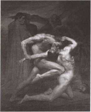 Данте и Вергилий в аду. Картина В. Бугро (1850). «Они дрались… друг друга норовя изгрызть в клочки» (Ад 7:112–114).