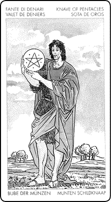 Привлекательный молодой Паж Пентаклей является персонификацией Земли – олицетворением земной энергии, соединяющей масть Пентаклей с миром материи и физического существования. Другими словами, Паж Пентаклей – это графический пример того, как Земля может принять человеческий облик.