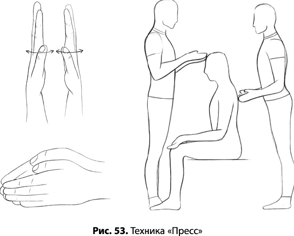 Движение «пресс» похоже на крестообразное движение, но руки для него не перекрещиваются. Не напрягайте ладони, держите их параллельно друг другу, слегка согнув ковшиком.