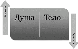 Питание для души, духа и тела разнится. То, что полезно телу, не может быть полезным для души. Например, тело любит отдыхать (поспать, расслабиться), а душа любит, чтобы хозяин тела встал и помолился своему Создателю. В богатстве тела происходит обеднение души и, наоборот, в богатстве души – обеднение (угнетение телесных наслаждений).