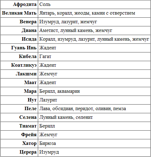 Далее указаны камни, ассоциирующиеся с конкретными богинями.