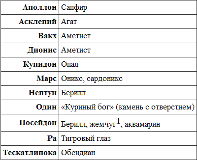 Далее указаны камни, ассоциирующиеся с конкретными богами.
