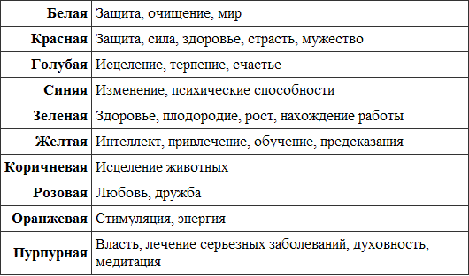 Вам понадобится свеча того цвета, который символизирует вашу магическую потребность. Можете руководствоваться приведенным ниже списком (или действовать так, как подсказывает вам интуиция).