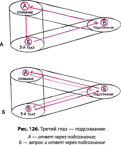 ? запрос и ответ через подсознание. В этом случае подсознание проводит обработку информации и по дороге туда, и на пути обратно (рис. 126Б). Этот вариант нужен для получения особенно сложной и запутанной информации.