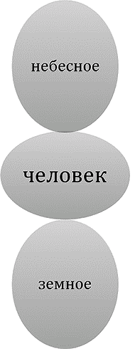 Человек находится в середине между двумя полюсами. Чем больше человек погружается в земное, тем больше оно как магнит притягивает его к себе. И тем самым он отдаляется от небесного (Бога).