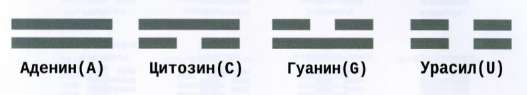 Следовательно, так же, как из 4-ёх различных биграмм образуются 64 разные гексаграммы, так и 4 генетические буквы А, С, G и U составляют 64 кодона.