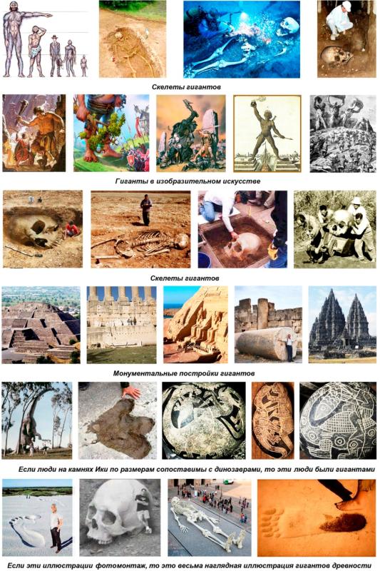 В Европе, «ГИГАНТЫ» описаны у Гомера, Аполлония Родосского, Страбона, Арриана, Филострата. Арнобий сообщал о находке «ГРОМАДНЫХ ЧЕЛОВЕЧЕСКИХ КОСТЕЙ». В 20-м веке Марсел Бодуэн сообщал о находке на блоке кварцита «ОТПЕЧАТКА ОГРОМНОЙ ЧЕЛОВЕЧЕСКОЙ НОГИ». В Англии, близ Плимута, были найдены «ЧЕЛОВЕЧЕСКИЕ ЗУБЫ И ЧЕЛЮСТЬ ГАНТСКИХ РАЗМЕРОВ». А в Норвегии, в древних пещерах, нашли «КОСТИ РУК, НОГ И ГОЛОВЫ ГИГАНТСКИХ ЛЮДЕЙ». В России, в Крыму, и в Грузии найдены «СКЕЛЕТЫ» 3-х метрового роста.