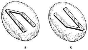 Рис. 25. Руна Лагуз: а – прямое положение; б – перевернутое положение