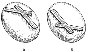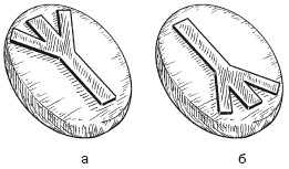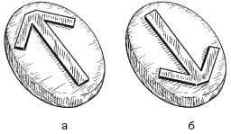 Рис. 21. Руна Тейваз: а – прямое положение; б – перевернутое положение