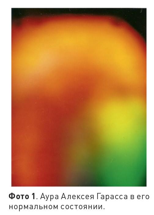 Поэтому такие эксперименты были необходимы. Доехав до фотоателье, Алексей Гарасс, как тот, кто подвергался эксперименту, первым делом снял свою ауру в начальном её состоянии (см. фото 1).