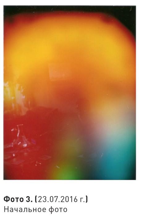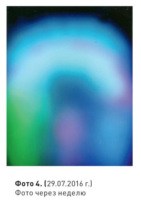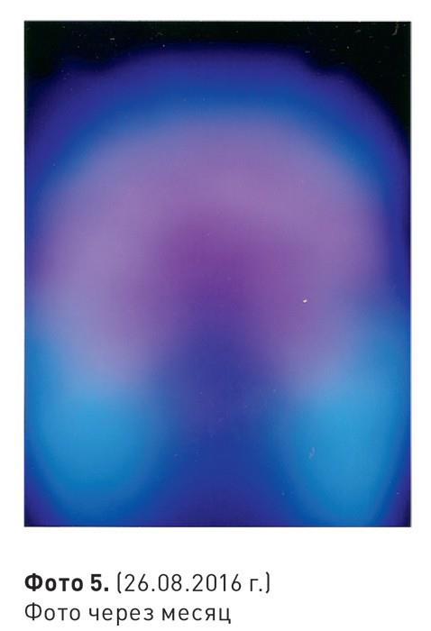 После этого он надел амулет, который носила Л.А. Секлитова на протяжении трёх недель, и, подержав его на себе в течение 10 минут, сделал второй снимок (фото 2).