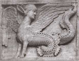 Гарпия. Рельеф собора в Фиденце (Италия, XII в.). Близкая родственница средневековой стриги.