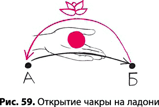 К примеру, мы хотим открыть чакру на ладони. Как мы это делаем? Представляем картинку, на которой отмечена чакра, либо смотрим на ладонь. Такое, образное, мышление первично и удобно для сознания: человек овладевает им раньше, чем вербальным. Помещая в свое сознание картинку, мы сразу понимаем, что нам делать; даже научившись читать, мы продолжаем пользоваться этим механизмом. И именно он, как наиболее естественный, лучше всего подходит для работы с подсознанием. Сформированную сознанием картинку с чакрой на ладони мы можем отправить по проводнику из точки А в точку Б, то есть в подсознание – вместе с командой «открыть». И уже через секунду после отправки команды получить отчет о выполнении – почувствовать, что чакра открылась. Подсознание постоянно подбрасывает сознанию информацию. Сознание, в свою очередь, может приказывать подсознанию. По внутреннему проводнику между А и Б постоянно идет обмен данными, словно электрическими сигналами по тоненькому проводу (рис. 59).