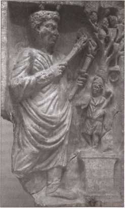 Архигалл (верховный жрец) приносит жертву Аттису. Древнеримский рельеф III в.