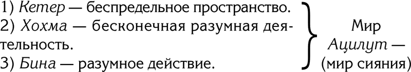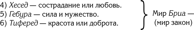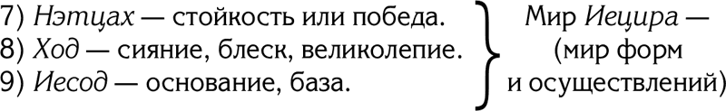 Эти Сефироты высших свойств имеют равнозначащие понятия в сферах законов, движения и жизни. Вот они: