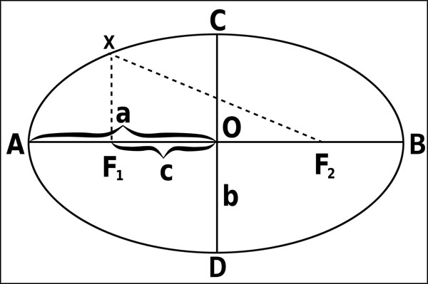 Особенности и характеристики невозмущенного движения планеты, согласно первому закону Кеплера, следующие: планета движется вокруг Солнца, все время оставаясь в одной плоскости и описывая эллипс, причем Солнце находится в одном из фокусов этого эллипса (F1 на рис. 1). Наиболее близкая точка эллиптической орбиты от Солнца называется перигелием (А), а наиболее удаленная – афелием (В). Эти точки лежат на линии апсид (АВ), которая еще называется большой осью орбиты планеты. Большая полуось орбиты (а = АО) рассматривается как мера среднего расстояния планеты от Солнца. Период обращения планеты (Т) зависит от величины большой полуоси и массы планеты.