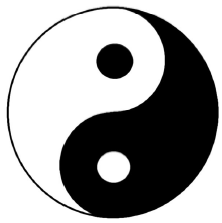 В древнекитайской мифологии и натурфилософии Инь-Ян («тай цзы», Великий Предел) – символ созидательного единства противоположностей во Вселенной. Его изображали в виде круга, образа бесконечности, разделенного волнистой линией на две половины – темную и светлую. Симметрично расположенные внутри круга две точки – светлая на темном фоне и темная на светлом – говорили о том, что каждая из двух великих сил Вселенной несет в себе зародыш противоположного начала. Темное и светлое поля, обозначающие соответственно инь и ян, симметричны, но эта симметрия не статична. Она предполагает постоянное движение по кругу – когда одно из двух начал достигает своего пика, оно уже готово отступить: «Ян, достигнув пика своего развития, отступает перед лицом Инь. Инь, достигнув пика своего развития, отступает перед лицом Ян».