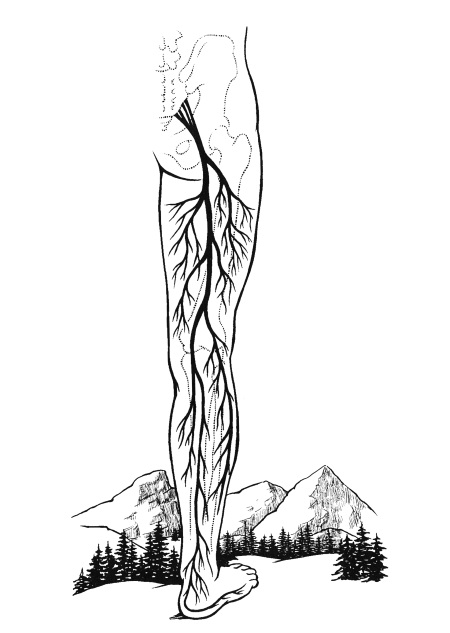На санскрите эта чакра называется муладхара, что означает «коренная опора». Седалищный нерв, который выходит из крестцового сплетения и проходит в ногах, является самым крупным периферическим нервом в теле (толщиной он почти с большой палец), и в нервной системе функции его напоминают функции корня (рис. 2.1). Мы передвигаемся с помощью ног, и они позволяют нам добывать средства к существованию из земли и нашего окружения. Наши ноги касаются земли и соединяют нашу нервную систему с ней, со стихией нашей первой чакры. И мы кинестетически откликаемся на гравитацию, основную силу, свойственную Земле, которая постоянно тянет нас вниз. Эта сила соединяет нас с планетой, укореняет наше материальное существование.