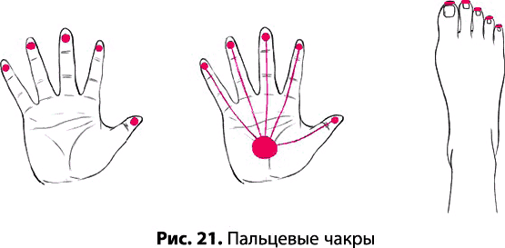 Аналогичная картина с десятью маленькими пальцевыми чакрами наблюдается на ступнях (рис. 21).