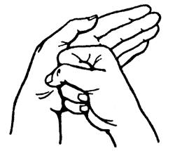 Методика исполнения: пальцы правой руки согнуты и сжаты в кулак. Кисть левой руки выпрямлена, большой палец прижат к кисти. Выпрямленная кисть левой руки прикрывает и прижата к тыльной поверхности кулака правой руки.