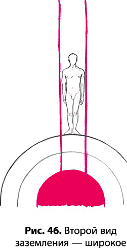 При таком виде заземления человек как бы оказывается зажатым в центре трубы. Он стоит на земле, на него плотно надета труба, один конец которой доходит до земного ядра, а второй поднимается над человеком на высоту его роста. В этом случае энергия стремительно уходит – как положительная, так и отрицательная.