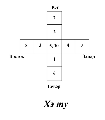 Запомните комбинации чисел Прежденебесного Ба Гуа. Их называют комбинации Хэ-Ту (Хэ ту).