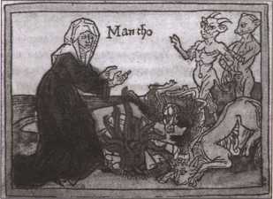 Прорицательница Манто, дочь Тиресия, вызывает демонов. Гравюра 1474 г.