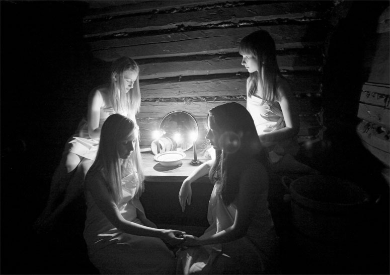 Святочные гадания кажутся забавой, но невероятно одно – они всегда сбываются. Вот самый простой способ – взять кусок свежего хлеба и завернуть его в шелковый платок, приговаривая: «Ряженый-суженый, приходи ко мне ужинать». Сверток надо положить под подушку и лечь спать. Во сне обязательно явится жених. Самым страшным считается гадание на двух зеркалах – девушка снимает с себя ремень, украшения и нательный крест. Затем сооружает «коридор» из двух свечей и двух зеркал, и в нем должен появиться силуэт суженого. Но долго смотреть в зеркала опасно – именно через такой коридор темные сущности могут прорваться в наш мир и украсть душу человека. После этого он навсегда останется бесноватым.