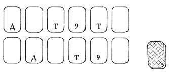 Для проведения гадания надо взять колоду из 36 карт, тщательно перетасовать ее, думая о загаданном молодом человеке, верхнюю карту положить на стол рубашкой вниз, рядом с ней также положить следующую карту. Должен получиться горизонтальный ряд из шести карт. Под ним следует выложить еще один ряд, как показано на рис. 18.