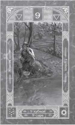 ? Отличие. Карта 9 Кубков Таро Алфавит кардинально отличается от карты в Таро Уэйта. Там мы видим довольного и счастливого эгоиста. В нашем случае он печален, подавлен и растерян. Какой образ практичнее и реалистичнее? Скорее всего, этот, поскольку редкий человек хочет оказаться в одиночестве, даже обладая всеми богатствами мира. Впрочем, отношение к этому очень личное.