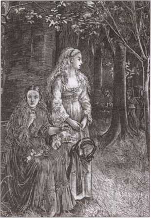 Кармилла и Лора в парке. Иллюстрация М. Фицджеральда (1872).