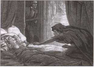 Кармилла в спальне Лоры. Иллюстрация Д.Г. Фристона (1872).