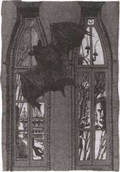 Летучая мышь у окна спальни. Иллюстрация Г. Боргмана (1974).