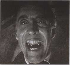 Незначительная реакция на послевоенный сентиментализм наступила с 1958 г., когда британская компания Hammer Films открыла свою серию фильмов о Дракуле с участием Кристофера Ли. Кровь хлестала рекой, Питер Кашинг в роли Ван Хельсинга истово работал колом, но сам граф, хотя и приобрел длинные острые клыки и злодейскую внешность, по-прежнему выглядел красавцем мужчиной — высоким аристократом с седеющими висками и царственной осанкой.