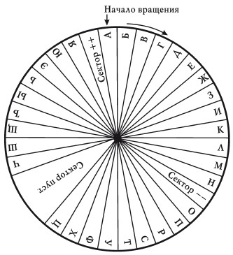 Данное гадание было популярно в России в конце XVIII века. Для его проведения следует положить в центр колеса Фортуны (рис. 4) чайную ложку выгнутой частью вниз и раскрутить ее. Запишите букву, на которую она указала, и раскручивайте еще 7 раз, записывая буквы.