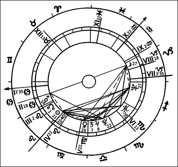 Рис. 45. Гороскоп Ивана Владимирова, построенный вручную