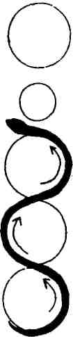 Рис. 3. Движение энергии Кундалини можно сравнить с работой шестеренок, по которым ползет змея. Если чакра слишком мала, через нее не передается энергия на следующую чакру! Восхождение Кундалини останавливается.