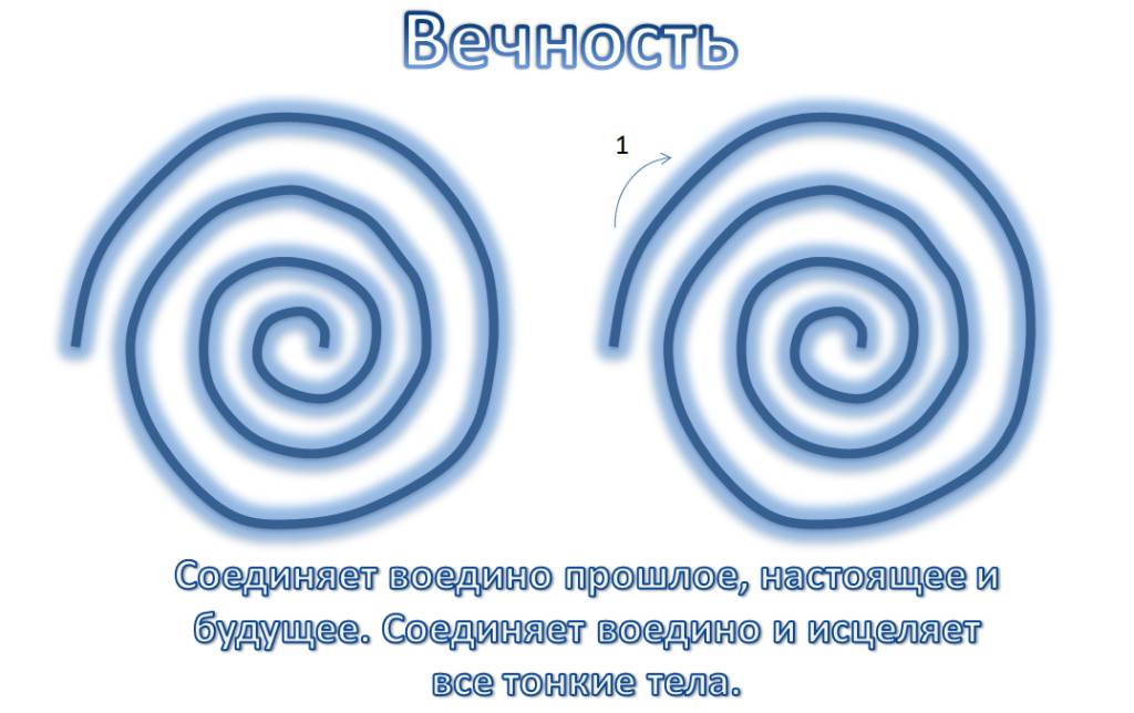 Этот символ соединяет воедино прошлое, настоящее и будущее. Он соединяет воедино и исцеляет все тонкие тела.